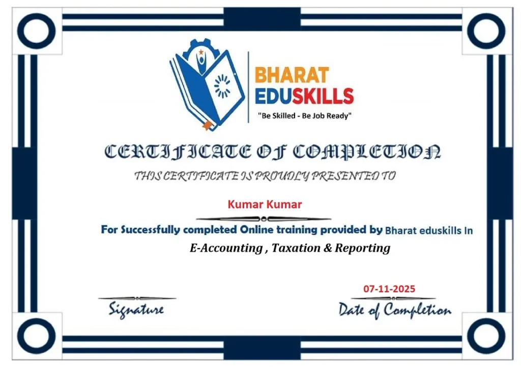 Be Certified upon successful course completion by Bharat Eduskills Private Limited and enhance your professional credibility. It represents dedication, knowledge, and expertise in Payroll filing.
